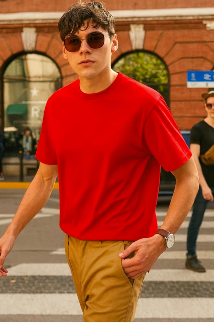 Be unique with Red Customized Half Sleeve Men’s Cotton T-Shirt from Oteess.